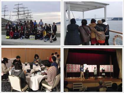 次に,観潮船(日本丸)に乗船して、「うずしおクルーズ」を体験しました。淡路島と鳴門市を挟む「鳴門海峡」で、激しい潮流が発生する事によりできる自然現象の「うずしお」を、間近かで見る事ができました。