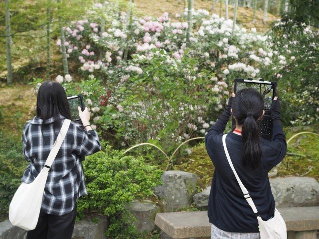 世界文化遺産・天龍寺を訪れ、春のやわらかな空気に包まれた境内を見学しました。新緑が美しい庭園では、草花や景観に目を向けながら、思い思いに写真を撮る姿も見られました。また、竹林の小径(竹藪の回廊)を散策。静けさの中に凛とした雰囲気が漂う竹林の道を歩き、嵐山ならではの自然を体感しました。縁結びの神社として知られる野宮神社を参拝し、歴史や文化に触れる貴重な時間となりました。