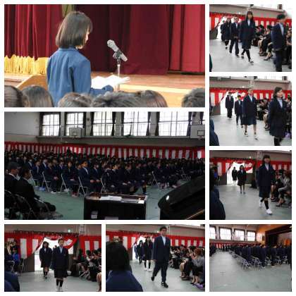 本日、午後から第70回八条中学校入学式が執り行われました。