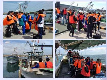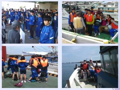この日,天気は良いのですが風が強く,魚を捕まえることは危険だということで,漁場までのクルージングに予定が変更されました。