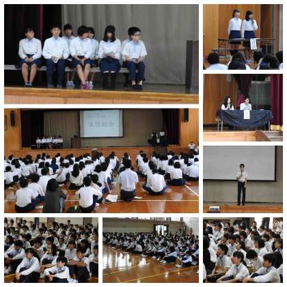 学級での討議、各種委員会での討議等を重ね今年度の八条中の方針や目標が発表されました。