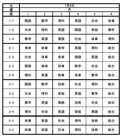 通常通り学校にて教育活動が行われる場合は下記の時間割にて活動します。確認お願いします。