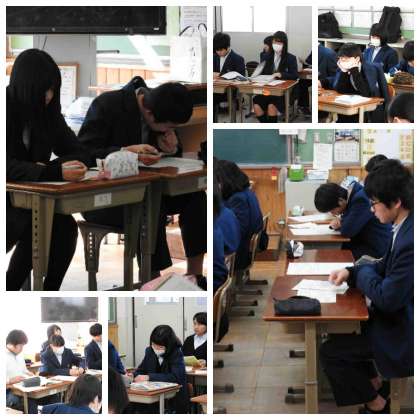 明日、公立中期入試を控え、過去問や演習問題に取り組んでいましたが、私学や前期選抜で合格を決めている人も真剣に問題に取り組んでいました。