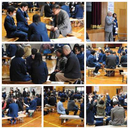 毎年の事ですが、地域の方々に来ていただき、生徒と大人のフリートークを行います。