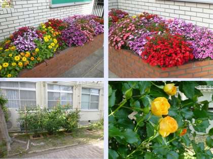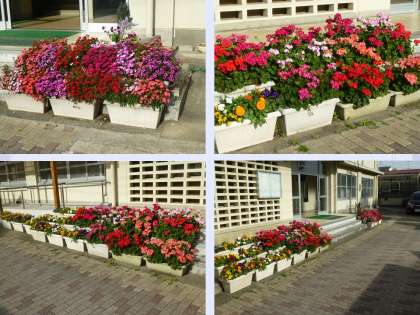 学校の花壇やプランターの花たちも今が盛りとなっています。
