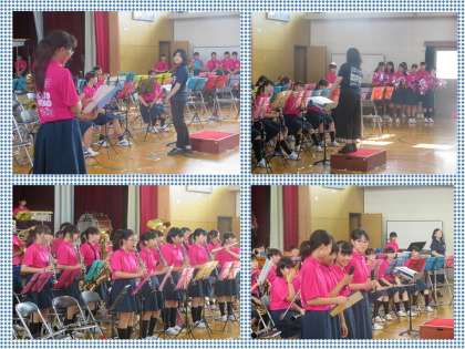 7月6日(土)午後、唐橋小学校で第8回唐橋児童館夏祭りが行われました。エンディングで本校吹奏楽部が演奏し、会場を大いに盛り上げました。蒸し暑い体育館の中でしたが、子どもからお年寄りまで大勢の方が来場され、大きな拍手をいただきました。1年生も初めて1曲演奏を担当し、緊張のなか見事にやり切りました。部員の皆さん、顧問の先生お疲れ様でした。