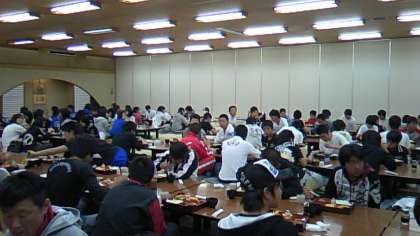 午前の体験を終了し、レストラン大滝苑に集まり昼食です。午後のラフティングに備えて、まずは腹ごしらえです。