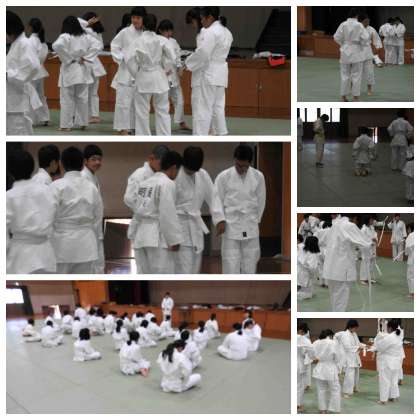 1年生の体育の授業は柔道を行います。大半の人たちが初めての経験で最初の授業では柔道着を着るにも悪戦苦闘しています。