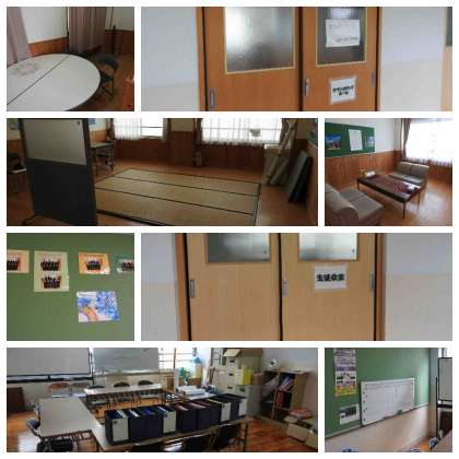 音楽室・いきいき交流ルーム・柔道室・カウンセリングルーム・生徒会室の写真です。