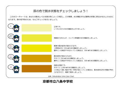 トイレには脱水症をセルフチェックできるような表を掲示しました。