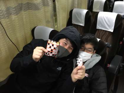 バスレクでビンゴをして盛り上がっています!