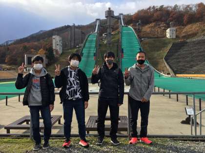 大きなジャンプ台をバックに仲良く写真撮影です。