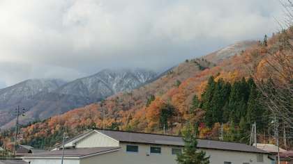 紅葉と雪の色が映える、白馬を去ります。また来たいと思える素晴らしいところでした。