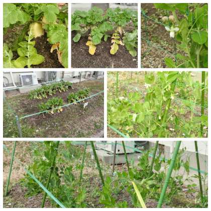 ダイコン・スナップエンドウ。収穫の時期が楽しみです。