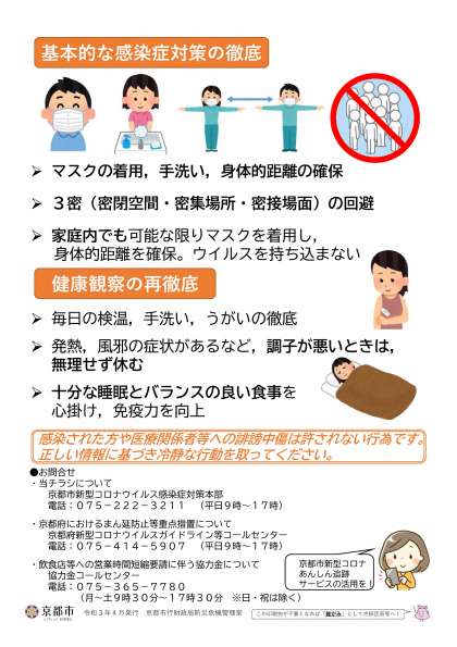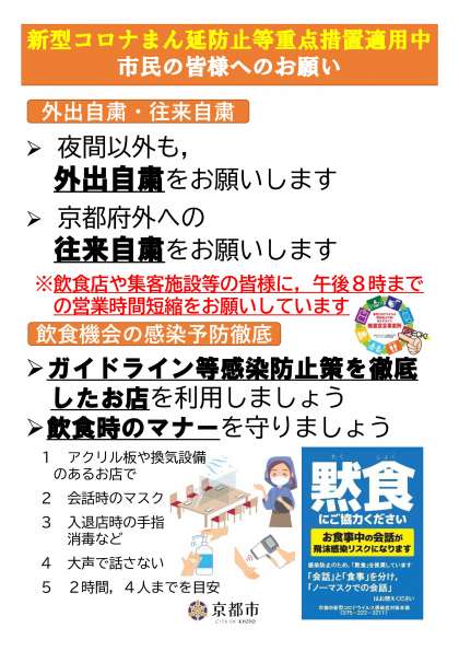 京都市を重点地域として4月12日(月)から「まん延防止等重点措置」が適用されました。