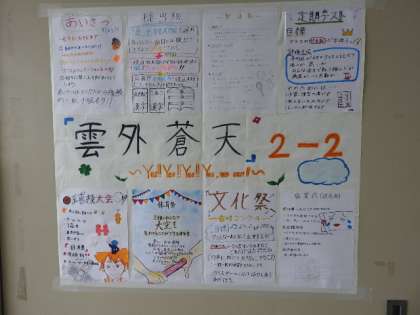 学校で作成した学校行事に向けた目標が掲示されています。