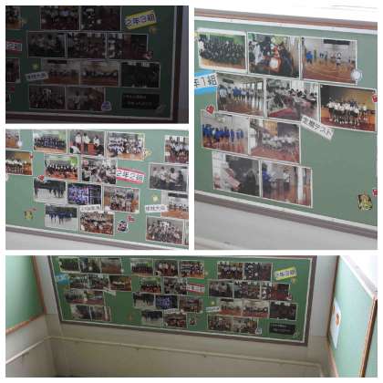 階段横の掲示板に学校生活の様子が掲示してあります。