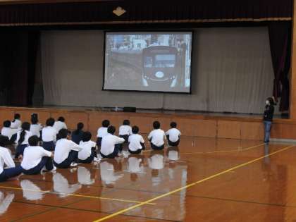 集会ではクラスで作成したhatTubeを流しました。