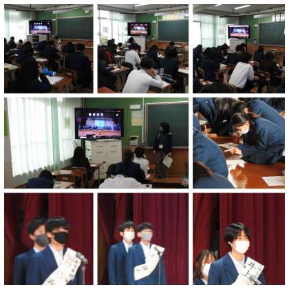 1,2年生は体育館にて3年生は教室で参加しました。