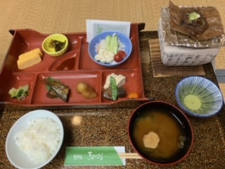 旅館「きよはる」での朝食 現在外は雨