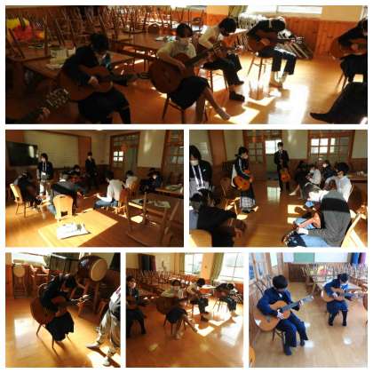 音楽の授業でギターに挑戦。