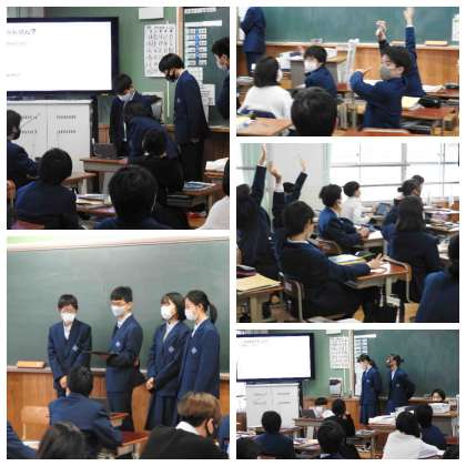 英語、国語の授業では班毎にプレゼンテーションを行っていました。