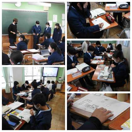 家庭科の時間では家具をレイアウトした図面を作成していました。