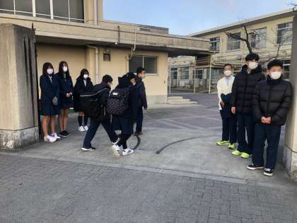 生徒会と議会が連携し,朝のあいさつ運動を行っています。