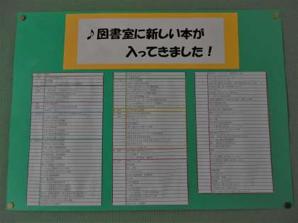 新しく入った本のリストを北校舎の各フロアに掲示しています。まだ感染症対策のため図書室の昼休み開館はできない状態ですが,開館した際にはぜひ本を読みに図書室に来てください。