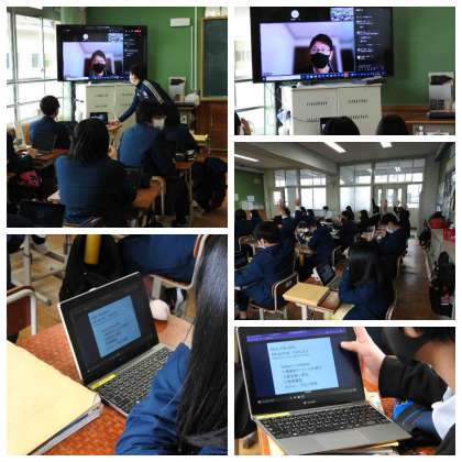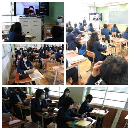 普段、目の前にいる先生がモニター越しに見え、生徒たちは新鮮な気分で授業を受けていました。