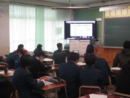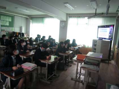 今回は校内の別の場所から,リモートで各教室に配信を行っています。