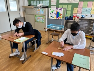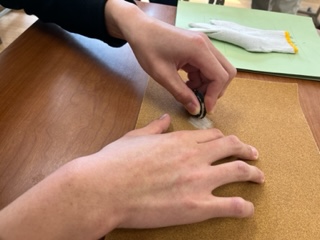 理科の授業では、貝殻をはり合わせてハンコ作りを行っています。完成が楽しみですね。