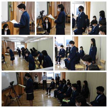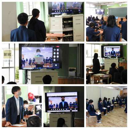 今回もリモートにて実施し、代表者だけが集まり、その他の人たちは教室で参加しました。