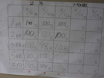 今日は「ノーベル」にも取組、時間を意識して全校が行動しています。
