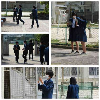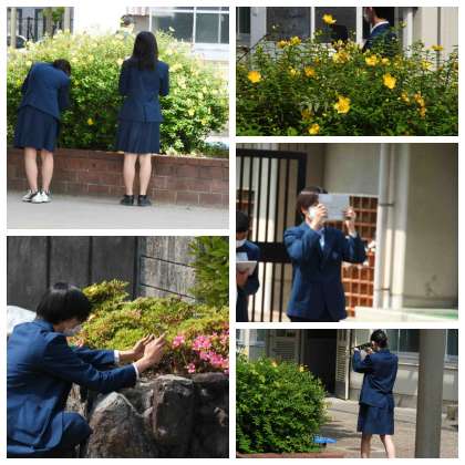 3年生の美術の授業ではタブレットのカメラ機能を使用して、校内の風景を撮っていました。
