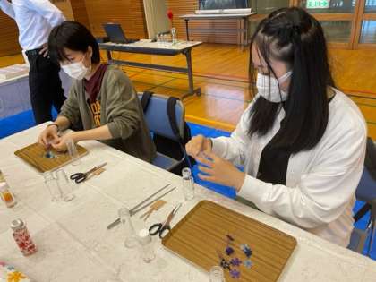 好きな花やストーンを選んで瓶に入れています。すごく落ち着いた雰囲気…。