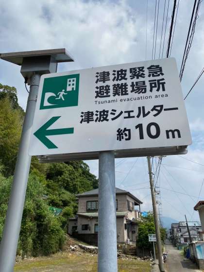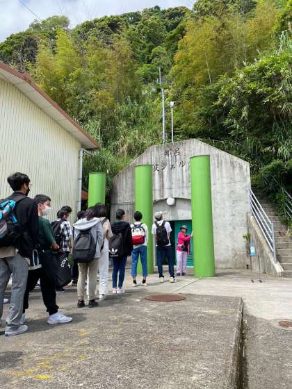 1組、室戸での最初の見学先、都呂津波シェルターに到着しました。