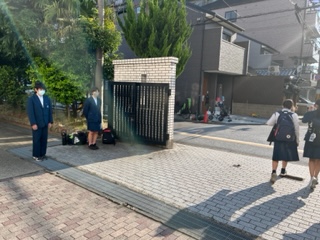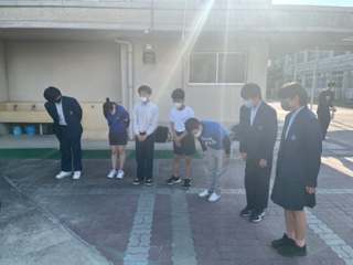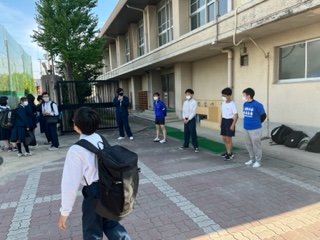 八条中学校では、昨日から部活動生徒と顧問で「あいさつ運動強化週間」を実施しています。部活動終了後に、生徒と顧問が校門の前に立ち、下校する生徒にあいさつをする取り組みです。