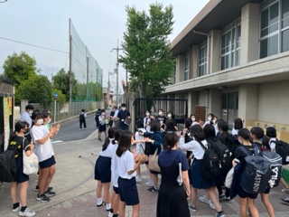 陸上部はとびきりの笑顔で手を振りながらあいさつをしてくれていました。