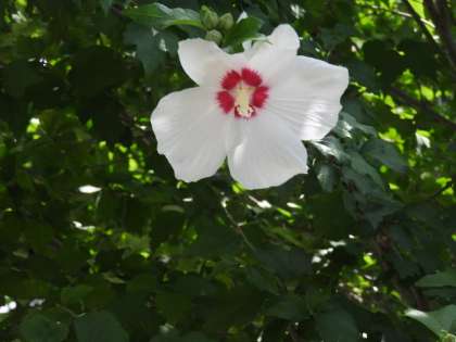 ムクゲの開花時期は6月〜10月。ムクゲは2月22日、3月22日、8月26日、9月11日の誕生花だそうです。