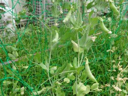 エンドウの実はパンパンに膨れて、もうすぐ収穫できそうです。