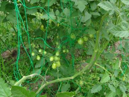 トマトは、鈴なりにたくさん実っています。早く赤くなるといいですね。