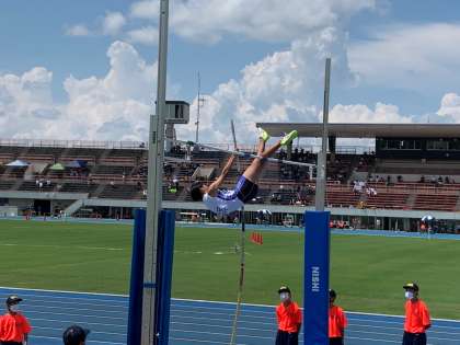 近畿大会、陸上競技にて男子棒高跳が行われて3m20をクリアしましたが、次の高さをクリアできず、終了となりました。