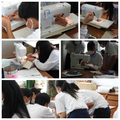1年生の家庭科ではミシンを使い、ペンケースを作成しています。