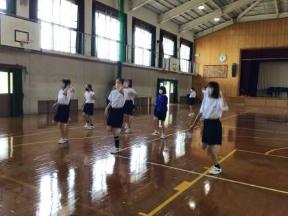 体育の授業では、集団演技のダンスの練習に熱心に取り組んでいます。