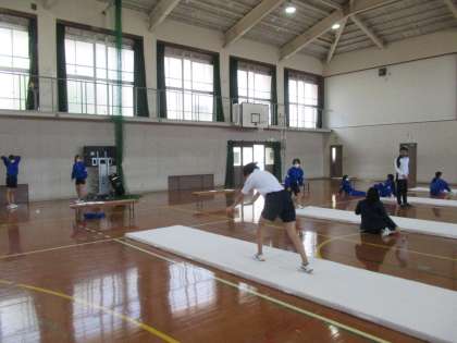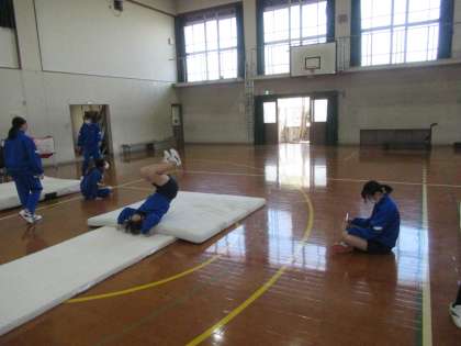 GIGA端末で自分の演技を確認しながら、フォームの改善をし、よりよい演技を目指します。
