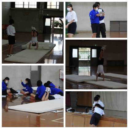 1年生保健体育の授業はマット運動です。GIGA端末を活用して授業に活かしていました。