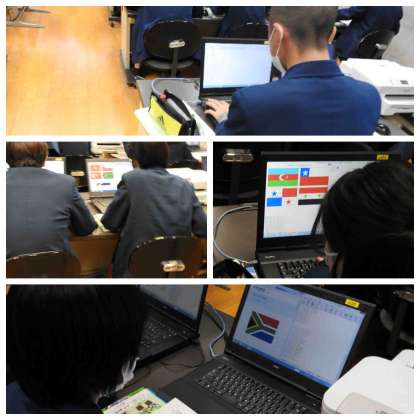 3年生技術ではパソコンで色の配列を行い、色鮮やかな国旗などを作成しています。