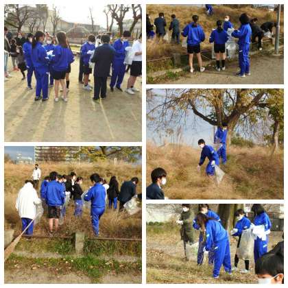 当日は吹奏楽部の生徒を中心に約1時間、清掃活動に取り組みました。