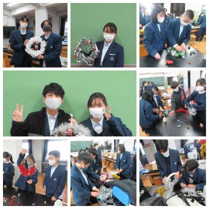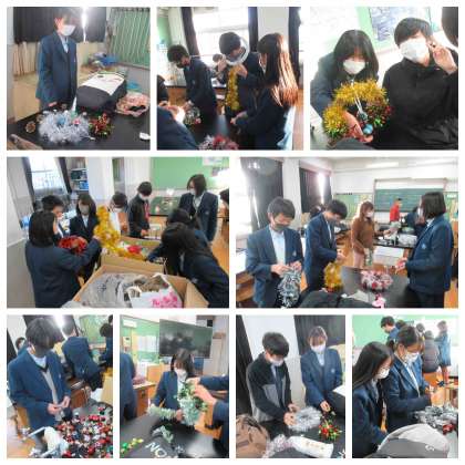 昨日、文化委員が中心となり、毎年作成しているリース作りをしました。
